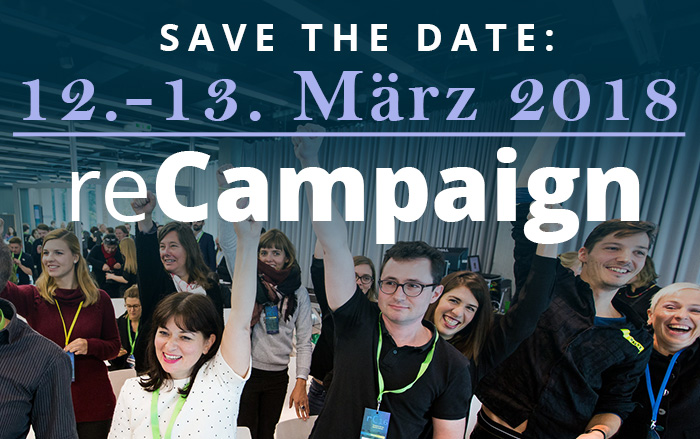 Zückt eure Kalender, Merkheftchen und Post-It-Blöcke: Die nächste reCampaign findet vom 12. bis 13. März 2018 statt. Wir freuen uns schon jetzt wie bekloppt und zählen ab sofort die Tage rückwärts: Nur noch 418 mal schlafen.